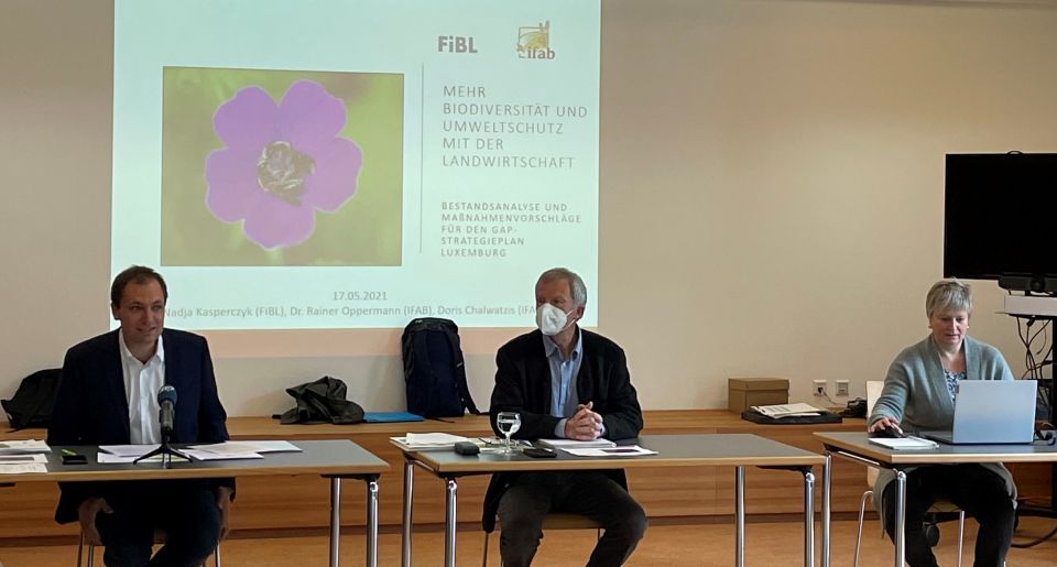 Das Forschungsinstitut für biologischen Landbau (Frankfurt/Main) und das Institut für Agrarökologie und Biodiversität (Mannheim) legten im Mai 2021 ihren gemeinsamen Bericht vor, den das Observatoire auch Landwirtschaftsminister Romain Schneider präsentiert.