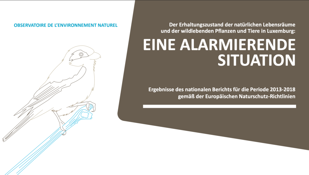 Zu diesem Urteil kommt das Observatoire de l’environnement naturel angesichts des aktuellen nationalen Berichts des Erhaltungszustandes von Lebensräumen und Arten, der alle sechs Jahre auf wissenschaftlicher Grundlage vorgenommen wird. Europäische Richtlinien sehen diesen Bericht in allen EU-Mitgliedsländern zwingend vor. Die Ergebnisse 2013-2018 wurden am 9. September 2020 vom Observatoire de l’environnement naturel der Presse vorgestellt.
